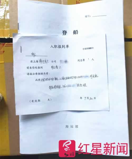 被骗上船的苏华(化名)出示了一张自己应聘时,公司出示的入职报道单,上面的联络人“青岛港负责人李经理”,这与姚松策去应聘时入职报到单上的“刘船长”的联系电话号码为同一个。“但我和姚松策去应聘的根本就是不同的公司。”苏华说。