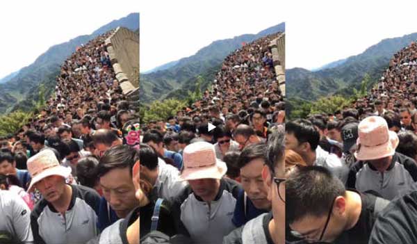 实拍国庆八达岭长城开启人人人人模式现场视频