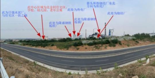 北金村社区、幼儿园、小学距离北金集团旗下水泥厂、焦化厂、钢铁厂等直线距离百米左右,与该集团旗下水泥厂更是仅仅“一街之隔”。