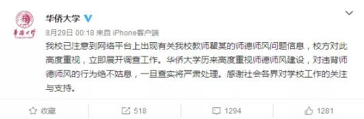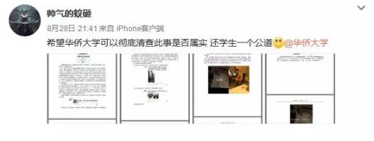 11日凌晨,华侨大学官方微博@华侨大学公布了调查结果。