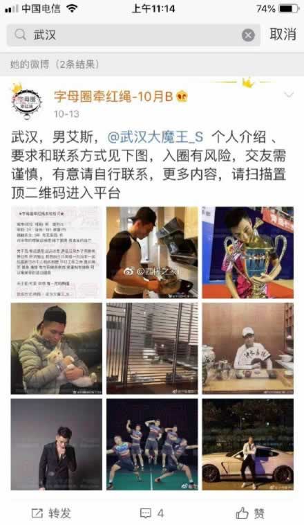 这位网友的爆料并不是空穴来风,微博上有那种专门约调的账号,会发布一些男s的信息,觉得ok的小m可以主动联系私聊。