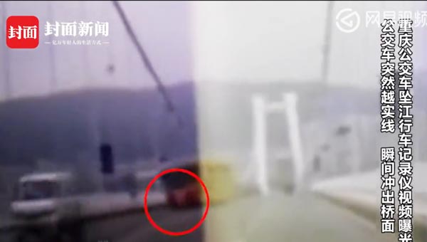 监拍重庆公交车坠江瞬间现场视频