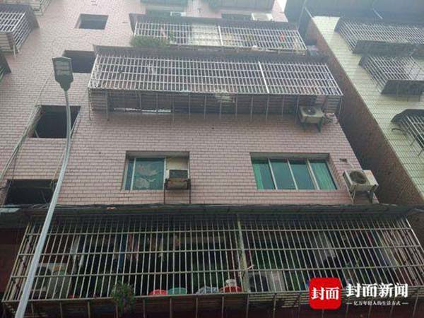 29日下午,封面新闻记者找到了冉某的住处。这是一栋特别老旧的居民楼,总共5楼,冉某住在3楼,是一套没有安装防护栏和空调的老房子。记者多次敲门,里面无人回应。