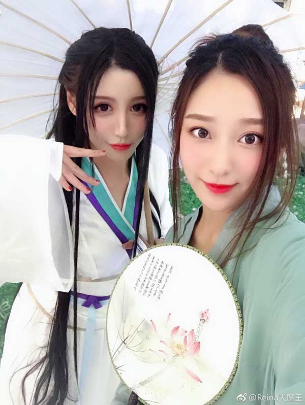 两姑娘化身白蛇与青蛇,撑伞现身商场,“尾巴”拖在地上,十分逼真。有网友表示万圣节国内组最佳cos当属白蛇青蛇,不过怕蛇的人看见这个可能会疯掉吧?