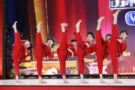 到节目一开场,周立波就收到了来自一群“龙拳小子”的助演邀请。这群少年来自宁波,各个都是跆拳道高手,一抬手一踢腿都刚劲有力,他们的表演整齐划一,充满了力量美,“为了这次表演,我们准备了两年了”龙拳小子称。而周立波恰好对跆拳道略通一二,很快就和少年们探讨起了专业问题,还要求他们展示“控腿”功力。也许是波波表现得太专业,勾起了小孩子的表演欲,其中一位少年林秋楠便请求周立波上台,帮助他完成接下来的才艺展示。这个助演风险可不小,周立波被要求举着木板让少年展示回旋踢,“万一你踢到我的脸怎么办?”波波装作害怕的样子小心翼翼地问道。“不会的,我技术很棒的!”林秋楠自信满满,周立波听后干脆地举起木板,还不忘幽默道:“我的脸已经不好看,再给你一踢,重新装修的基础都没有。好,我来也!”