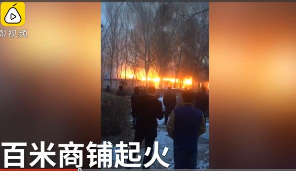 实拍黑龙江大庆突发大火烧毁百米店铺现场视频