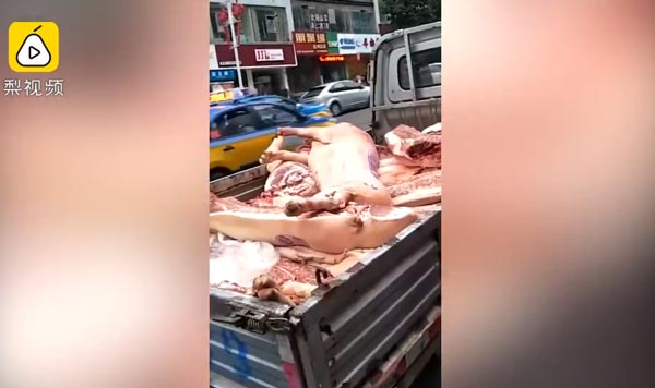 实拍贵州六盘水街头疑现非洲猪瘟肉现场视频