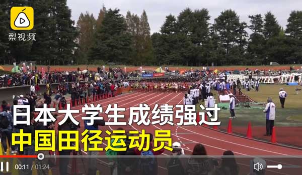 实拍中国田径运动员竟跑不过日本普通大学生现场视频