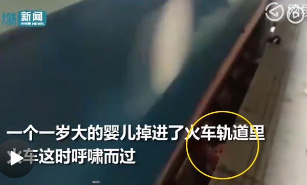 实拍1岁婴儿掉进火车轨道火车在头上呼啸而过现场视频