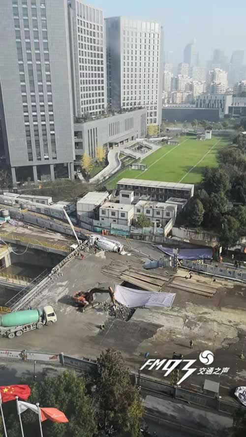 原标题:杭州在建隧道工地塌陷:面积约150平米,槽罐车掉入无人伤