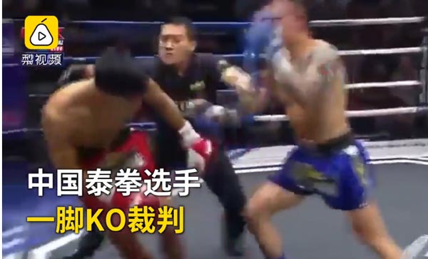 中国泰拳选手苟大奎在一场比赛中,一个横踢腿不仅让对手倒地,也把裁判踢翻了。苟大奎在接受梨视频的采访时表示,裁判当时上来想保护对手,自己不是故意的,对裁判非常抱歉。裁判目前脸部骨折,一只眼睛看不清。