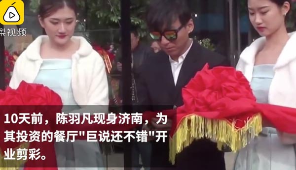 11月28日,陈羽凡被爆吸毒被拘。10天前,陈羽凡曾现身山东济南,为其投资的餐厅“巨说还不错”开业剪彩。29日,拍客探访该餐厅,发现餐厅关门,店员称正在整修地面,明天就开门。