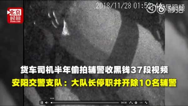 (原标题:网曝河南安阳“辅警收钱37段视频” 当地纪委和公安成立联合调查组 10名辅警被开除 大队长及3名民警停职调查)
