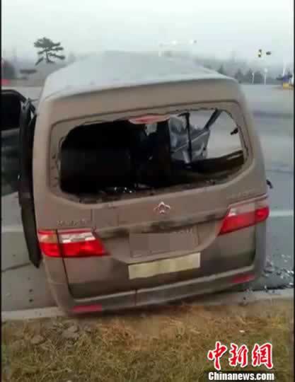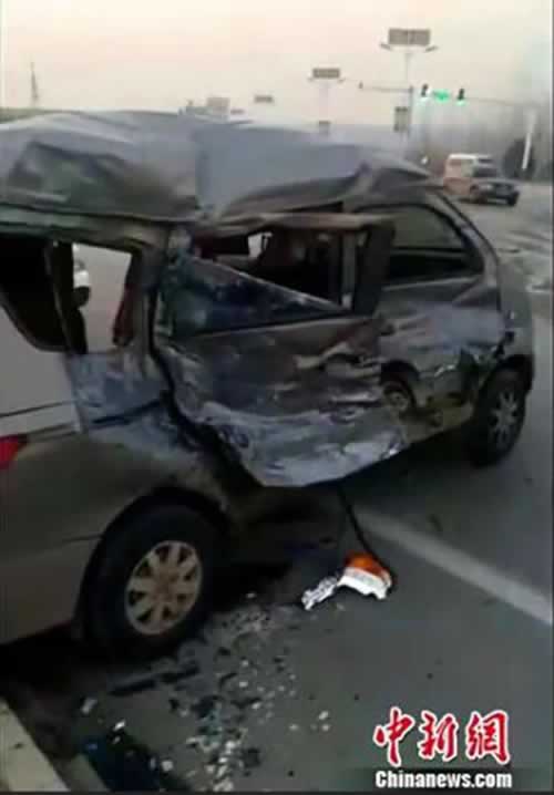 载有12名学生的面包车,已被撞变型。 本文图均为 中新网 图