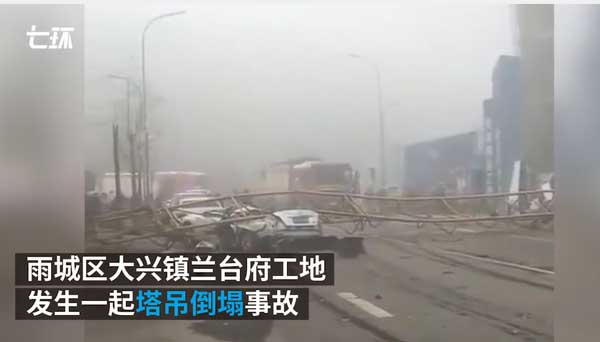 实拍雅安一工地塔吊倒塌砸坏汽车现场视频