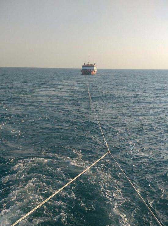 对方告诉钱报记者,昨天上午凌晨四点多,我们在东经127度29分,北纬30度40分捕鱼,发现了一艘游艇在无动力漂泊。当时我在船上鸣了喇叭,然后还高音喇叭喊话,但对方船上都没有人回应,我看游艇上门是开着的,就用小船靠近登艇查看,发现艇上确实没有人。我就用绳索牵引游艇,现在正在拖回沈家门渔港的途中。