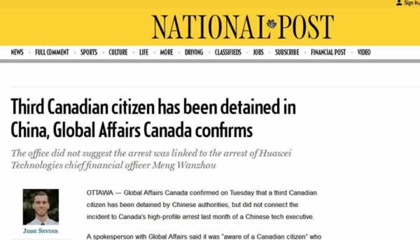 《全国邮报》称,该报无法证实第三名被拘留加拿大公民身份,但据知情人透露,此人不是外交官身份,也不是在华加拿大企业人员。
