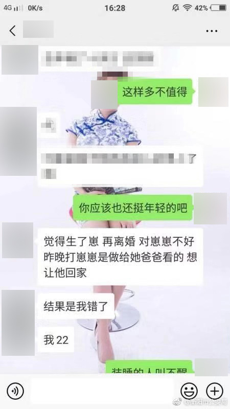 针对网上出现的两段疑似年轻妈妈虐待婴儿事件,1月5日下午,湖南衡阳市公安局回应澎湃新闻称,警方已介入调查,目前通过年轻妈妈的朋友与其取得联系,小孩无生命危险,女子今年22岁,虐打婴儿系为了引起丈夫关注,让其早点回家。