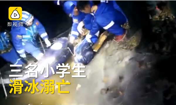 1月5号,山东德州。德城区一家医院向南大约500米的水域,有三名五年级小学生滑冰,掉进冰河溺亡。其中,两名学生漂浮在冰面上,被村民打捞上岸。另一名学生沉入水底,救援队采取声呐定位,方将其打捞上岸。