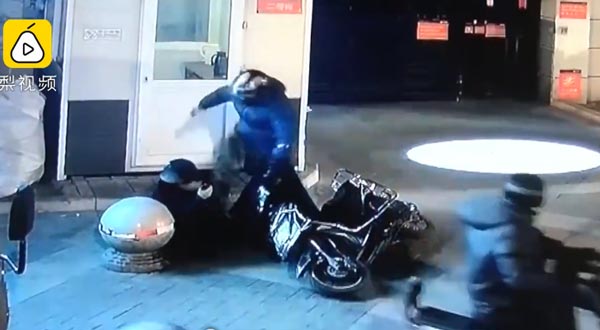 1月6日,辽宁沈阳。一男子在小区门口随意停放电动车影响业主出行,女保安上前劝阻却遭撞倒踢打。女保安12岁的儿子看到妈妈被打,冲上前猛踹男子,并拿出钢叉准备反击被旁人拦下。目前,打人男子已被派出所带走。