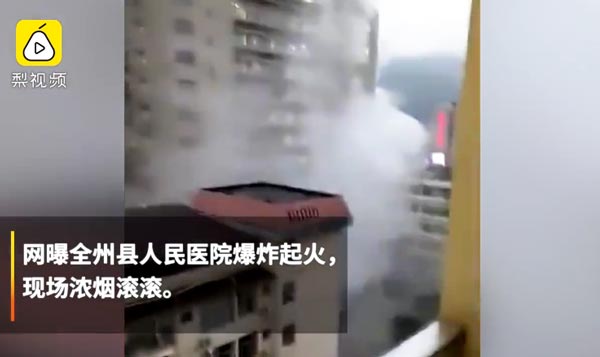 实拍广西全州县人民医院突发爆炸起火现场视频