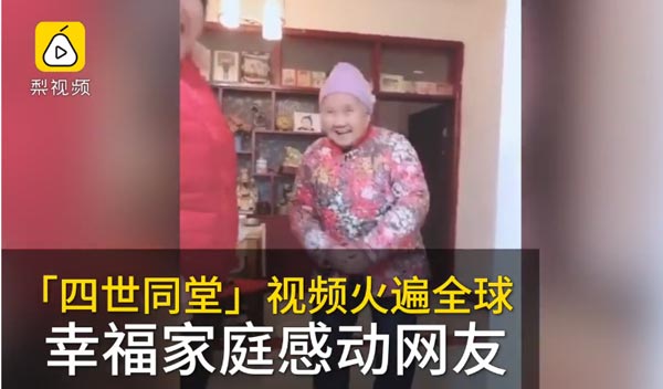 近日,一条来自河南刘老太一家“四世同堂”的视频从国内火到了国外。视频拍摄者告诉梨视频,老太太有5个儿女,如今已经已是五世同堂,一大家子共有26口人,平时一家人都很欢乐,很开心自己的故事能感染网友。