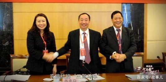 这张照片拍摄于2013年11月,云南省农村信用社联合社第三届理事会第一次会议。人物为时任省联社党委书记的蒋兆岗(中)、刚升任省联社理事长的万仁礼(右)和刚升任省联社主任的罗敏。当时意气风发的三人被视为农信社的“三驾马车”。在他们的身后,是资产总额突破1万亿元的云南省第一大金融机构。