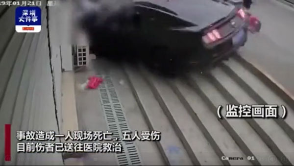 实拍深圳跑车冲向人行道致1死5伤现场视频
