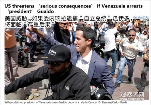 随即美方站出来为瓜伊多“撑腰”,威胁称“那些企图伤害瓜伊多的人将会面临严重后果”。