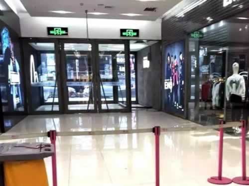 据现场的一名女士介绍,事发时间在13时10分许,在学府凯德广场商场区域,一扇位于室内一侧的大玻璃门突然发生倒塌,门旁一名女子猝不及防,被倒下的大门砸在了下面。
