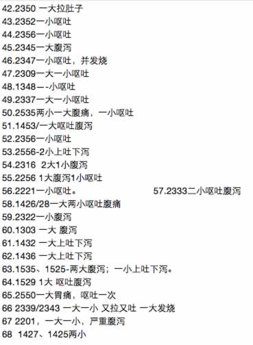 记者通过微博联系到了这名网友、哈尔滨游客毛女士。据她介绍,她的住店日期是从2月7日到10日,8日早上,一家四口人出现了不同程度上吐下泻症状,去医务室就诊时被诊断为肠胃炎,并开了一些药物。8日晚,在和其他房客交流时,发现很多人都有呕吐症状;9日晚,三十四个家庭均反映出现了疑似食物中毒现象,并建立了内部沟通微信群。