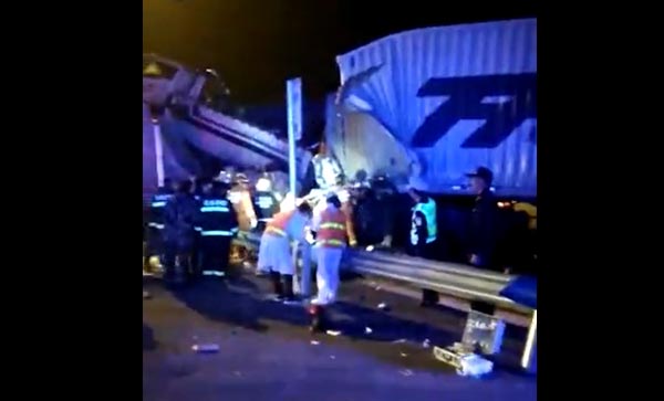 实拍广州乐广高速追尾事故致2死3伤现场视频