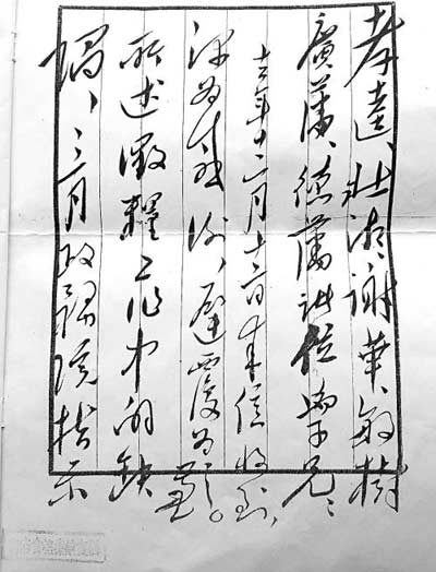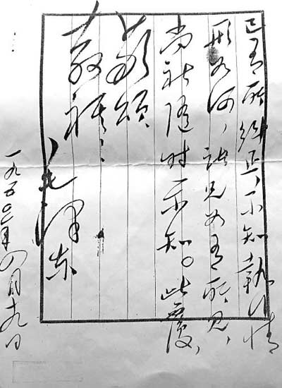“这封信是毛主席写给我父亲的私信,我们全家非常珍视。”10日,毛泽东主席同窗好友、新化人邹介圭的女儿邹娟娟表示,38年来,她和家人一直在努力追索这封信。原来,1949年12月,邹介圭给毛主席写信,直陈建国之初地方弊政。毛主席收到信后,及时采取措施纠正了地方政府的一些偏差,并亲笔给邹介圭回信。邹介圭感念伟人的情怀,将毛主席的回信当成传家宝珍藏。然而,1977年,当时的新化县档案馆派人将信“借阅”后,再也没有归还,邹家只拿回了一份复印件。