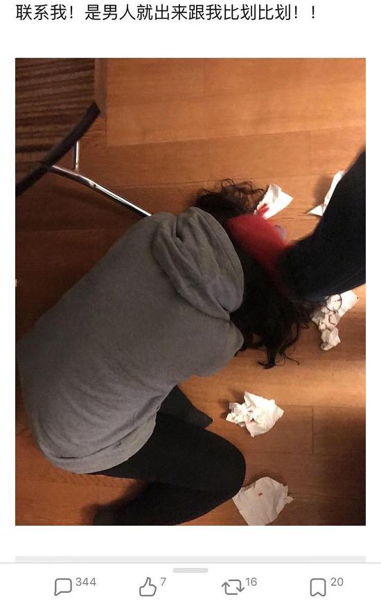 “苦涩BOY”自称是济南长清区人,在工地上干杂活,未婚妻是超市收银。称他爸妈攒了半辈子的钱,花了4万彩礼订婚,发现未婚妻出轨一40岁男子,便对未婚妻实行禁食并暴揍。在该男子上传的图片中,一身穿灰色卫衣的女子跪倒在地,头发被一只脚踩在地上。