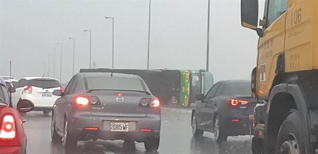 中时电子报称,游览车翻覆前,被一辆疑似失控的汽车撞到两次。