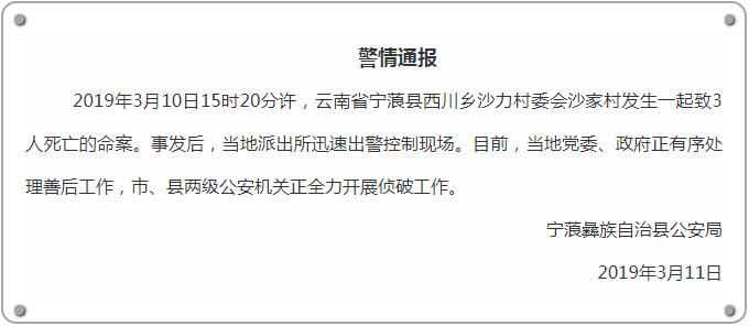 (原标题:云南省宁蒗县发生一起致3人死亡案件 警方已控制现场)