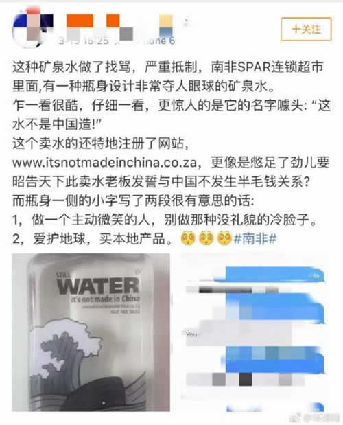 【南非矿泉水强调#这水不是中国造# 公司解释:不是反华】