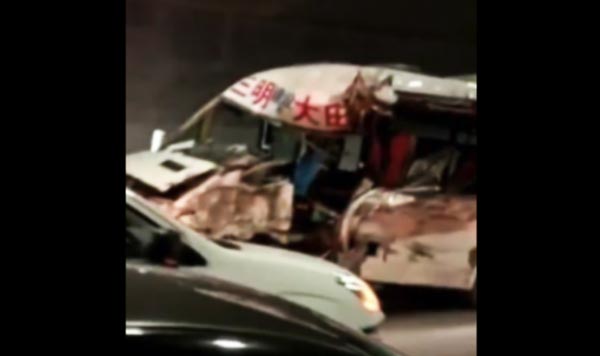 实拍福建三明市一隧道内两车相撞致3死5伤现场视频
