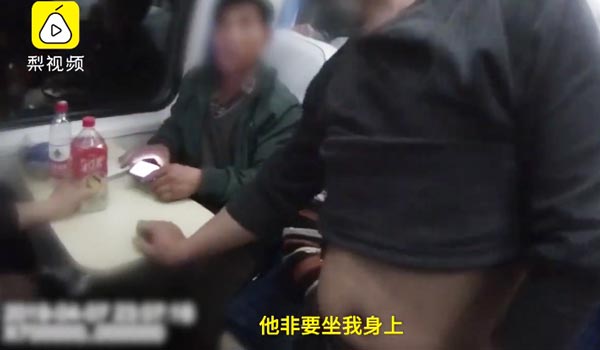 实拍醉酒男子强行坐女孩腿遭同车乘客群殴现场视频