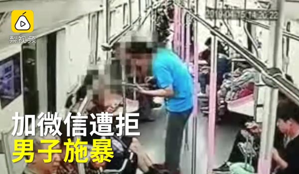 实拍武汉一男子地铁上要加美女微信被拒后施暴现场视频