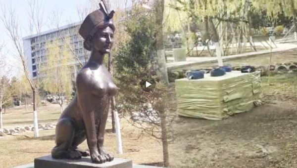 实拍内蒙古师范大学"狗身女脸"雕塑惹争议已拆除现场视频