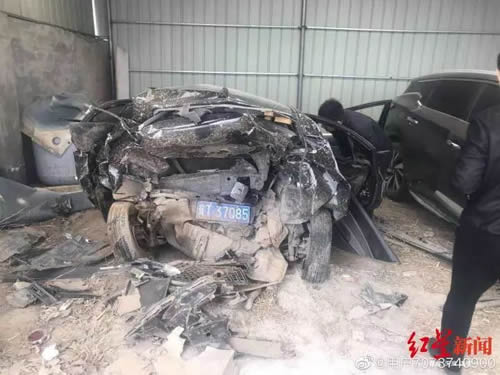 家属提供的被追尾车辆照片显示,该车尾部严重变形。