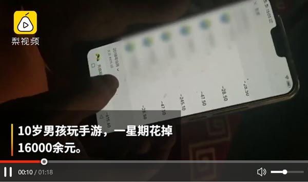 实拍河北10岁娃玩手游一星期花1万6现场视频