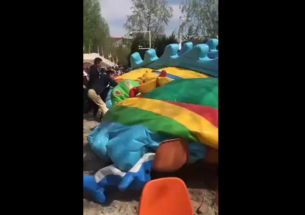 实拍河北涞源突发龙卷风掀翻充气城堡致2儿童死亡现场视频