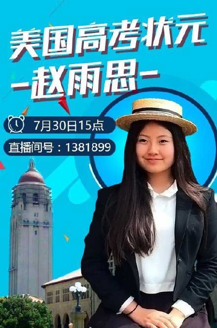 在直播中,赵思雨称此次直播的目的是为了激励大家对梦想要执着,不要轻易放弃。她小学时只考30分,现在却能拿到斯坦福offer,甚至还拿到了奖学金。