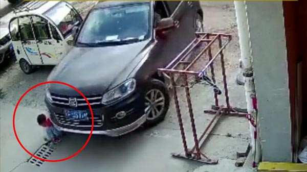 实拍江苏如皋一男童门前蹲地玩耍遭小车碾轧身亡现场视频