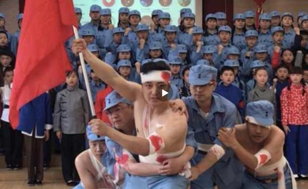 近日,安徽合肥,合肥安居苑小学举行合唱节,四年级学生演唱《保卫黄河》时,爸爸们“带伤”演绎英勇抗战的红军,被网友大赞“炸裂演技”。该校副校长介绍,除助演外,家长们还会以志愿者的身份参与学校的活动。