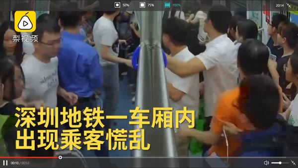 实拍深圳男子地铁拍视频大喊"卧倒"引发乘客混乱视频