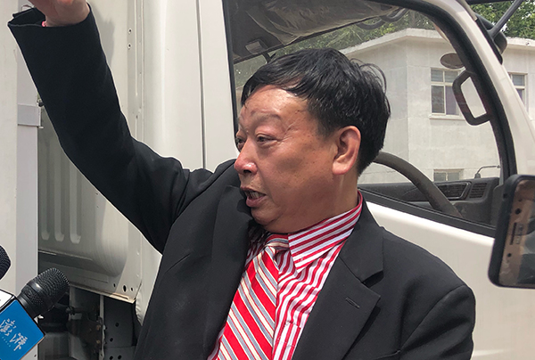 采访现场,青年汽车掌门人庞青年在回答记者问题。澎湃新闻记者 石轶君 郑朝渊 图