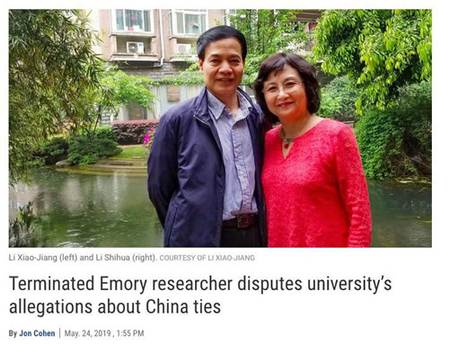 日前,有消息称美国埃默里大学以所谓中国“窃取机密”“违反NIH规定”为由,解雇华裔教授李晓江及其妻子,并关闭其实验室。